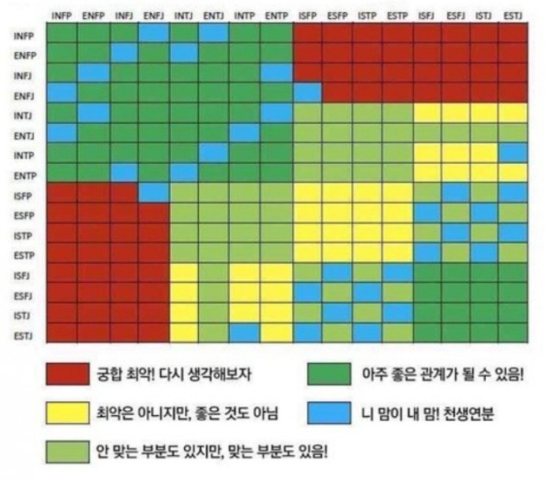 이번에는 mbti를 통해 볼 수 있는 성격유형을 가지고 테스트를 합니다. 상대측의 MBTI를 미리 알고 있으면 몸소 입력하셔도 하고, 어쩌면 카카오톡 공유나 공유링크 복제하기를 통해서 맞은편에게 시달해주셔도 되요.